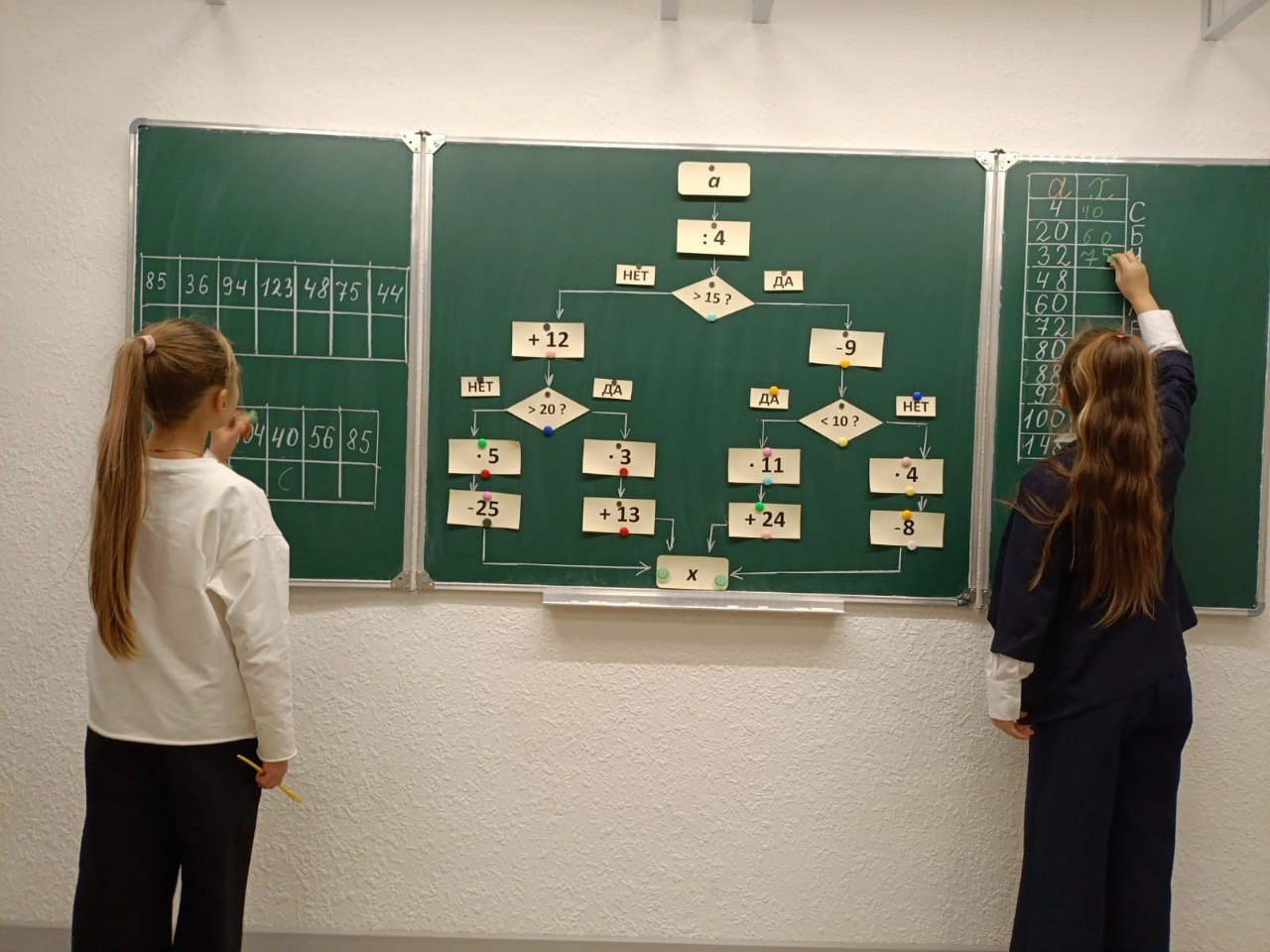 Обучающиеся МАОУ Алабинская СОШ с УИОП имени Героев Российской Федерации С.А. Ашихмина и Д.В. Межуева г. о. Наро-Фоминский познакомились с принципами работы ЭВМ через практические задания. Ребята вводили исходные данные и преобразовывали их согласно предложенной последовательности действий, получая на выходе искомый результат. Самым интересным этапом стало сопоставление полученных в результате вычислений чисел с буквами. Это задание превратило урок математики в литературное знакомство. Благодаря своим вычислениям, ребята узнали имя известного русского поэта Валерия Брюсова – автора стихотворения «Первый снег».