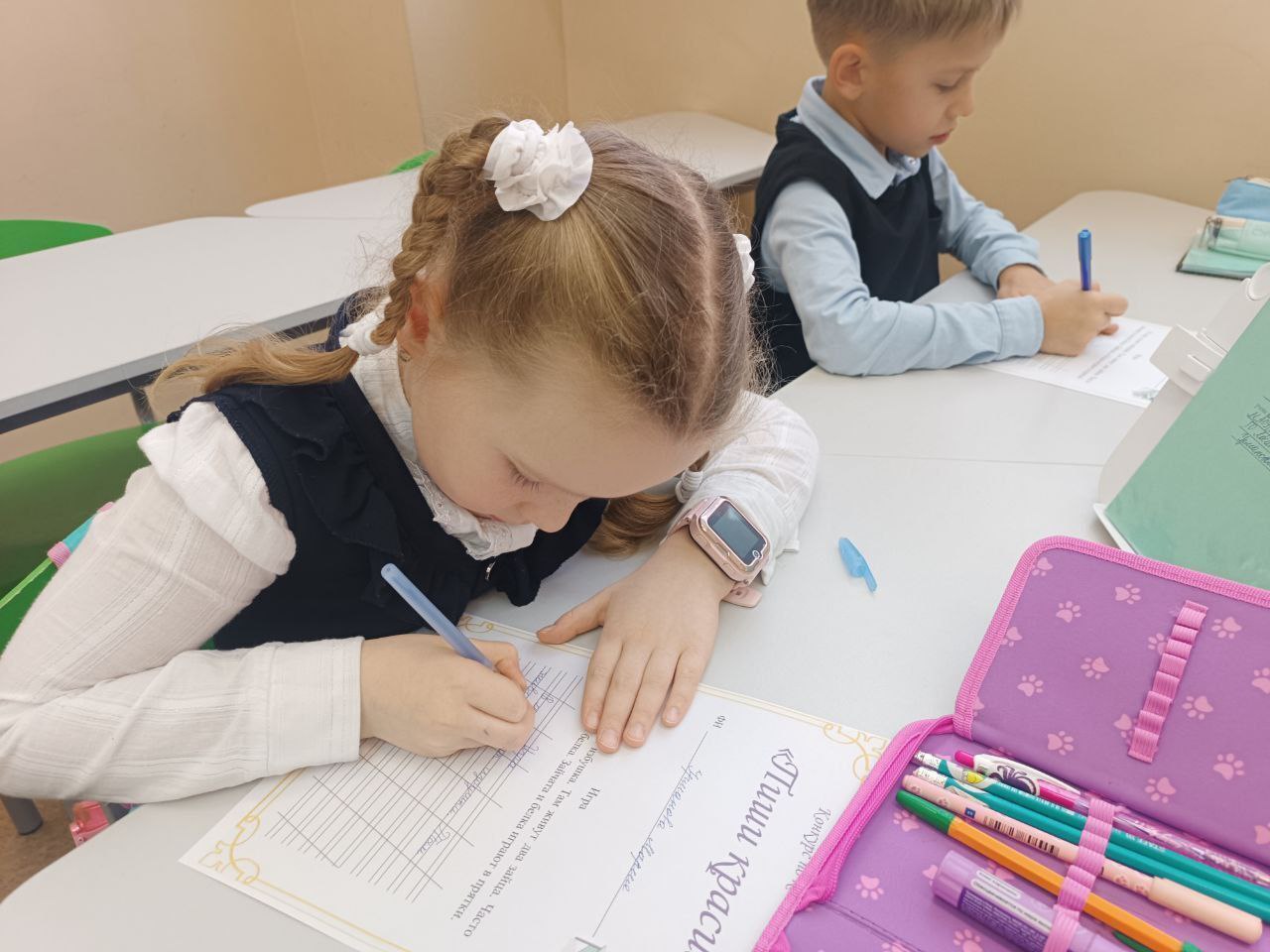 Обучающиеся МБОУ СОШ № 3 г. о. Чехов приняли участие в творческих проектах, направленных на развитие культуры письма и речи. Ученики 3 «Э» класса попробовали себя в роли авторов, создав коллекцию собственных волшебных сказок. Работа над сюжетами позволила ребятам проявить фантазию и закрепить навыки построения логического текста. Итогом стал рукописный сборник сказок о добре и дружбе, пополнивший классный уголок чтения. Для обучающихся 4 «Э» класса прошел традиционный конкурс каллиграфии. В этом году задание было усложнено: ребятам предстояло не просто продемонстрировать каллиграфический почерк, но и написать полноценное сочинение на тему «Как я провел зимние каникулы». Школьники успешно справились с задачей, объединив в своих работах эстетику письма и яркие литературные описания зимних праздников.