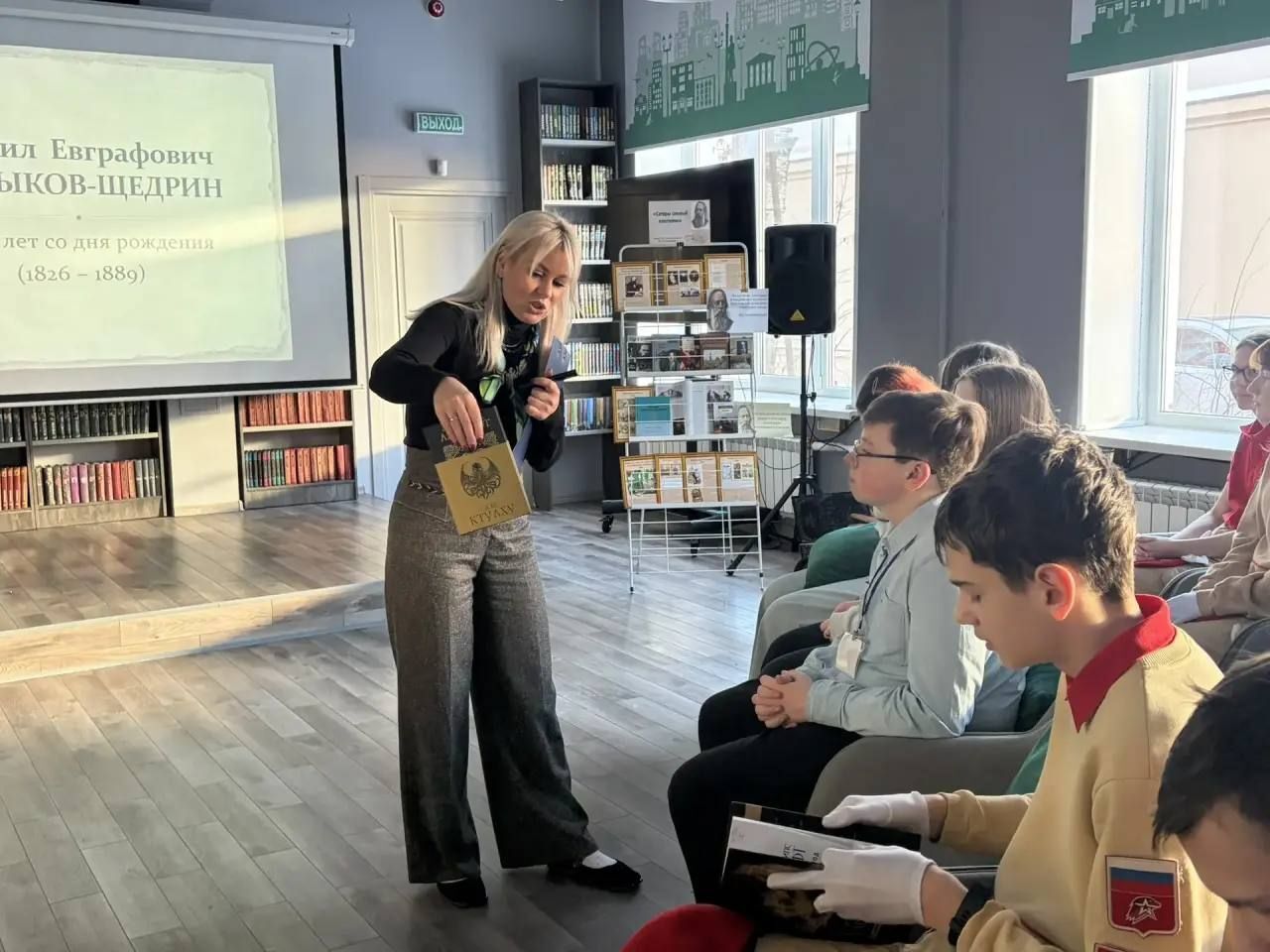 Особенно интересной и живой частью встречи стала познавательная викторина. Ребята активно угадывали героев знаменитых произведений, таких как «Премудрый пескарь», «Дикий помещик» и «История одного города», вспоминали крылатые выражения и разгадывали зашифрованные цитаты.