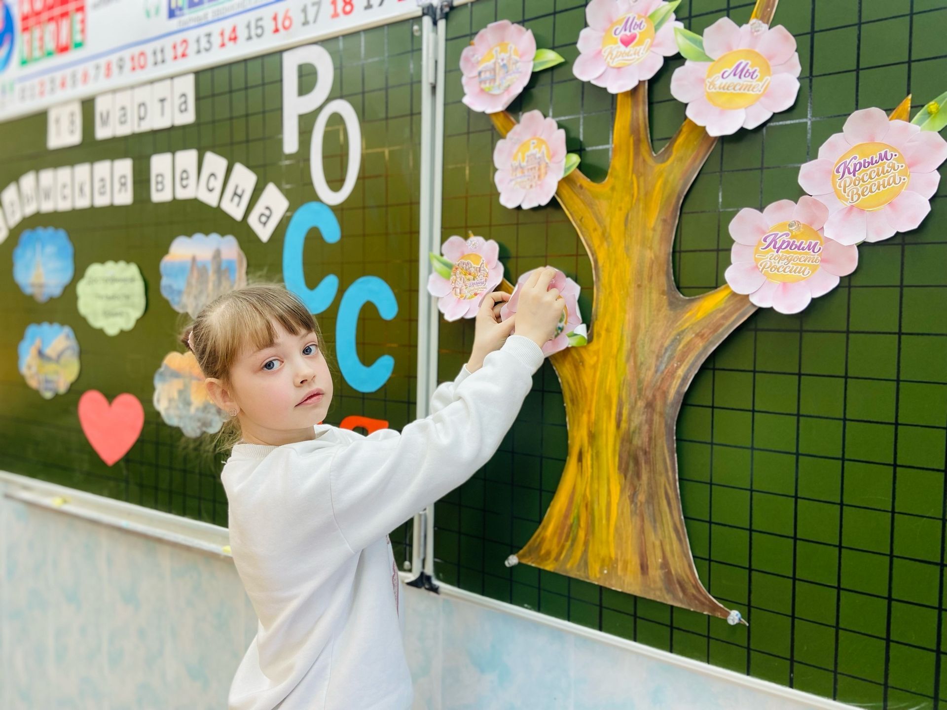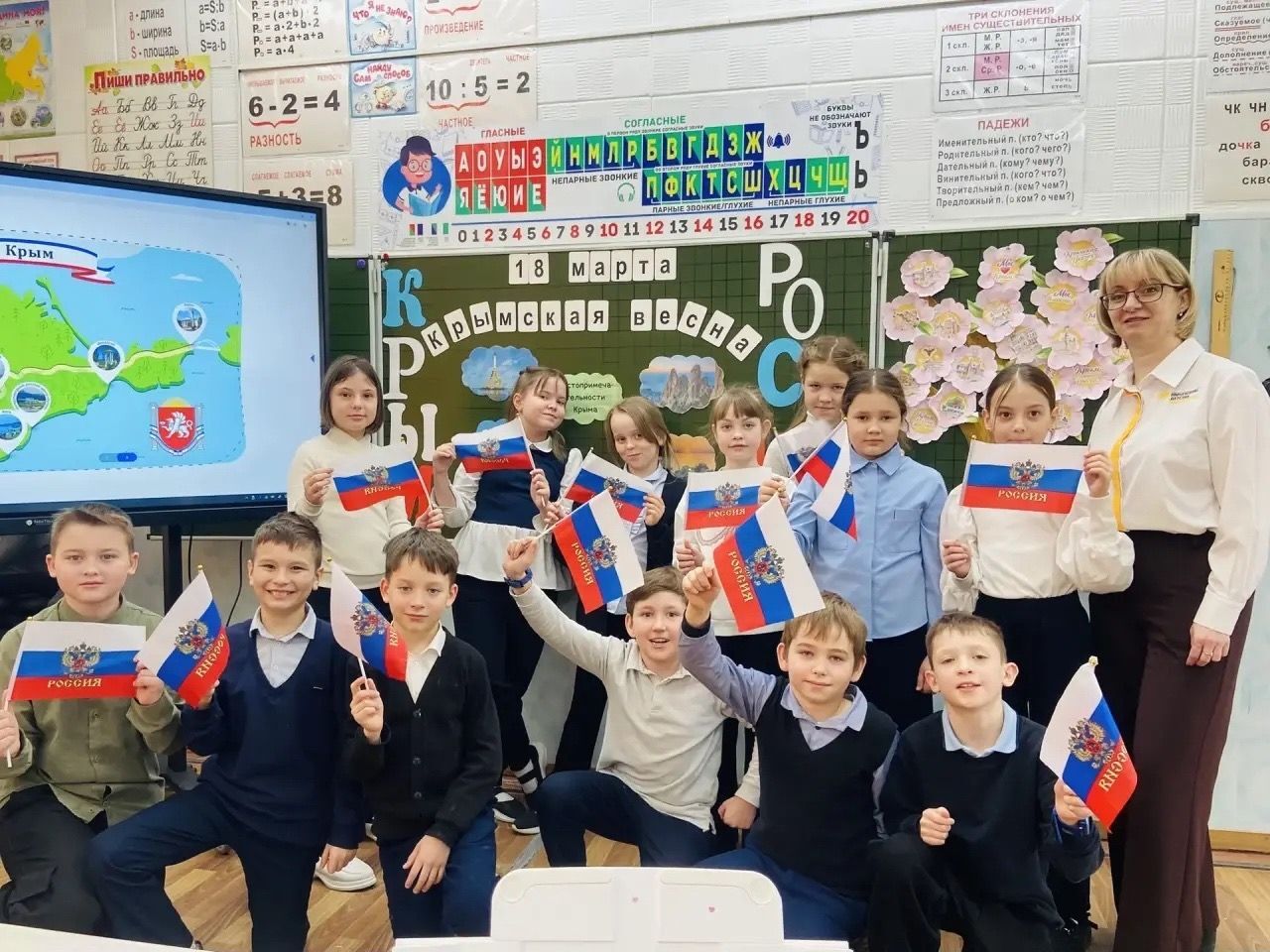 18 марта в 4 «А» классе МОУ Ликино-Дулёвская СОШ № 5 Орехово-Зуевского г.о. прошло по-настоящему теплое и значимое событие - День воссоединения Крыма с Россией. Вместе с советником директора по воспитанию ребята совершили виртуальное путешествие в историю Крыма: узнали о его удивительной природе и о том, почему этот день так важен для каждого из нас. Главным символом встречи стало «цветущее дерево», созданное руками учеников. Каждый ребёнок вложил частичку души в свой неповторимый цветок. Объединившись, ребята превратили обычное дерево в яркий символ Крымской весны и обновления. Эта дружная работа — лучшее доказательство того, что в единстве наша сила, а мы — одна большая и крепкая страна!