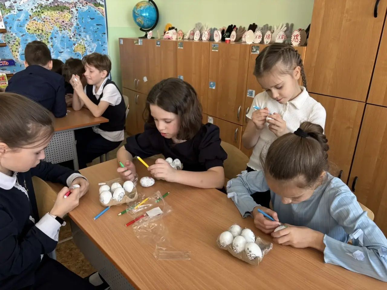 Обучающиеся 3 «Э» и 4 «Э» классов МОУ Ново-Харитоновская СОШ № 10 с УИОП Раменского м.о. подготовились к Пасхе: ребята освоили декупаж пасхальных яиц и смастерили оригинальных курочек из перчаток. Занятия помогли детям проявить креативность и укрепить дружеские связи в коллективе.