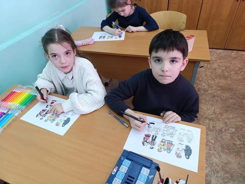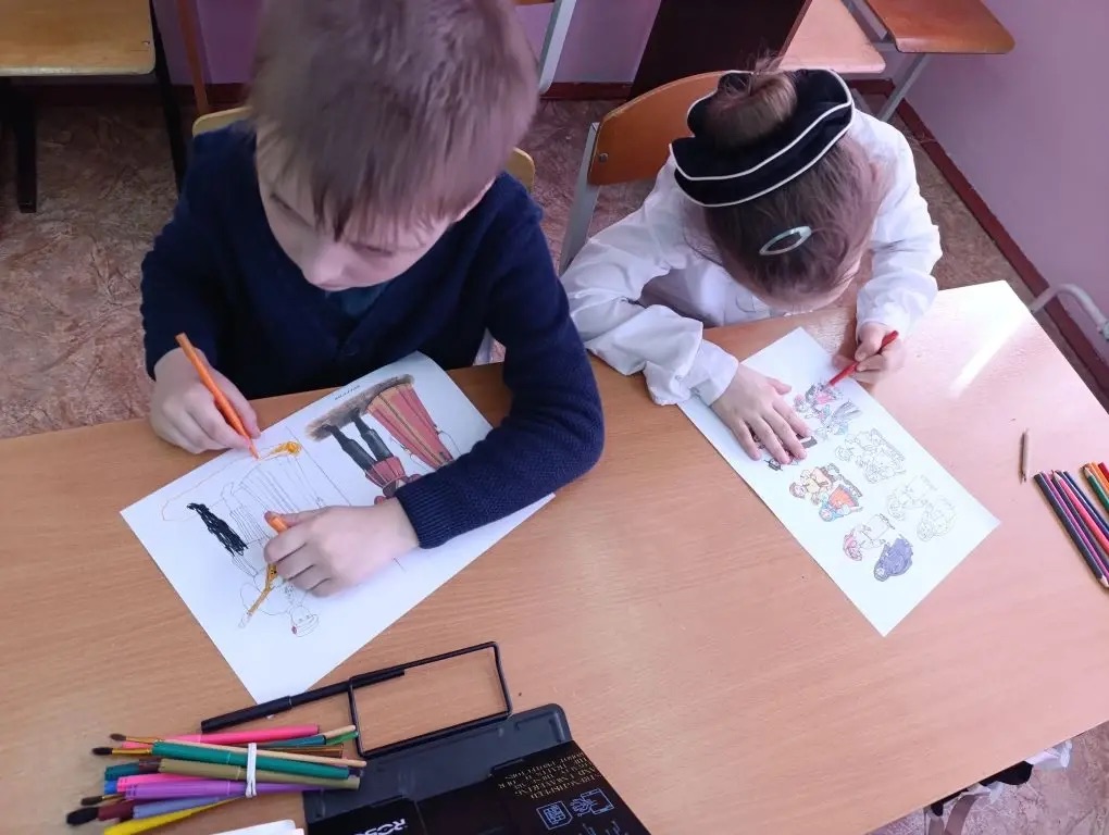 Главным событием стало раскрашивание народных костюмов. С помощью карандашей и фломастеров бумажные заготовки превратились в яркие сарафаны, расшитые камзолы и нарядные кимоно.