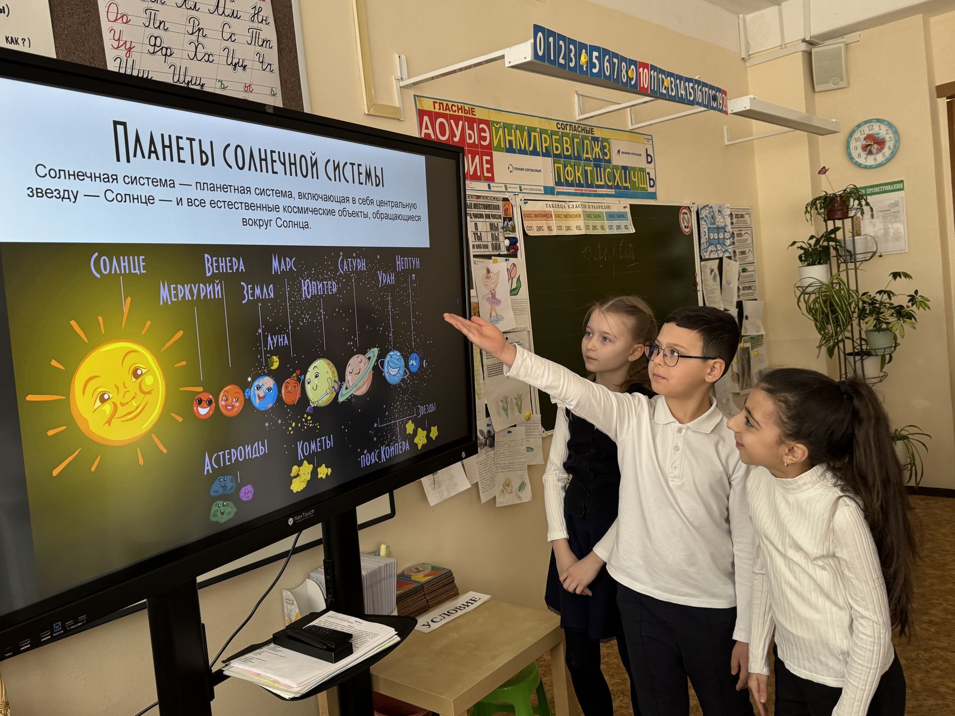В МОУ Ново-Харитоновская СОШ № 10 с УИОП м.о. Раменский обучающиеся 3 «Э» и 4 «Э» классов погрузились в интерактивное космическое путешествие. Ребята изучили устройство Солнечной системы и закрепили знания в викторине. Такое познавательное путешествие в мир космоса стало не только полезным, но и очень увлекательным, ребята расширили кругозор и получили яркие эмоции.